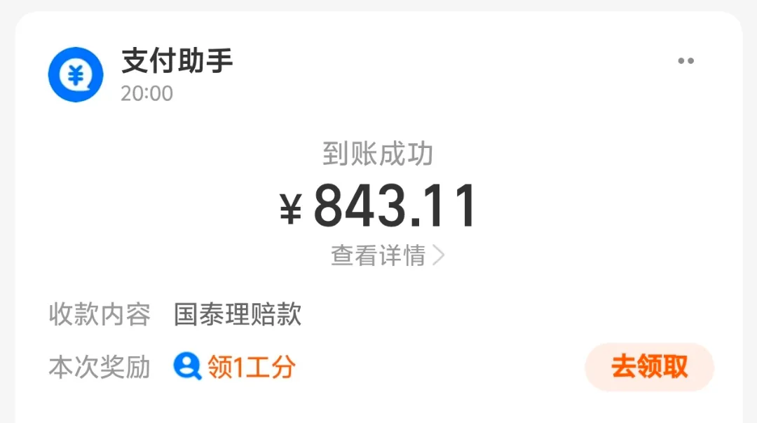 上个月小孩在外被只野猫咬伤,立马到医院处理。之后连续几个星期打了 2-1-1 共四针狂犬病阻断疫苗,以及免疫球蛋白,合计花费1094块钱。昨天听朋友说,这种也符合意外险报销范围,然后在支付宝找到我买的每个月20元的全家团体意外险,按要求提交医疗信息后,今晚就收到打款。报销比例大概是 77%。