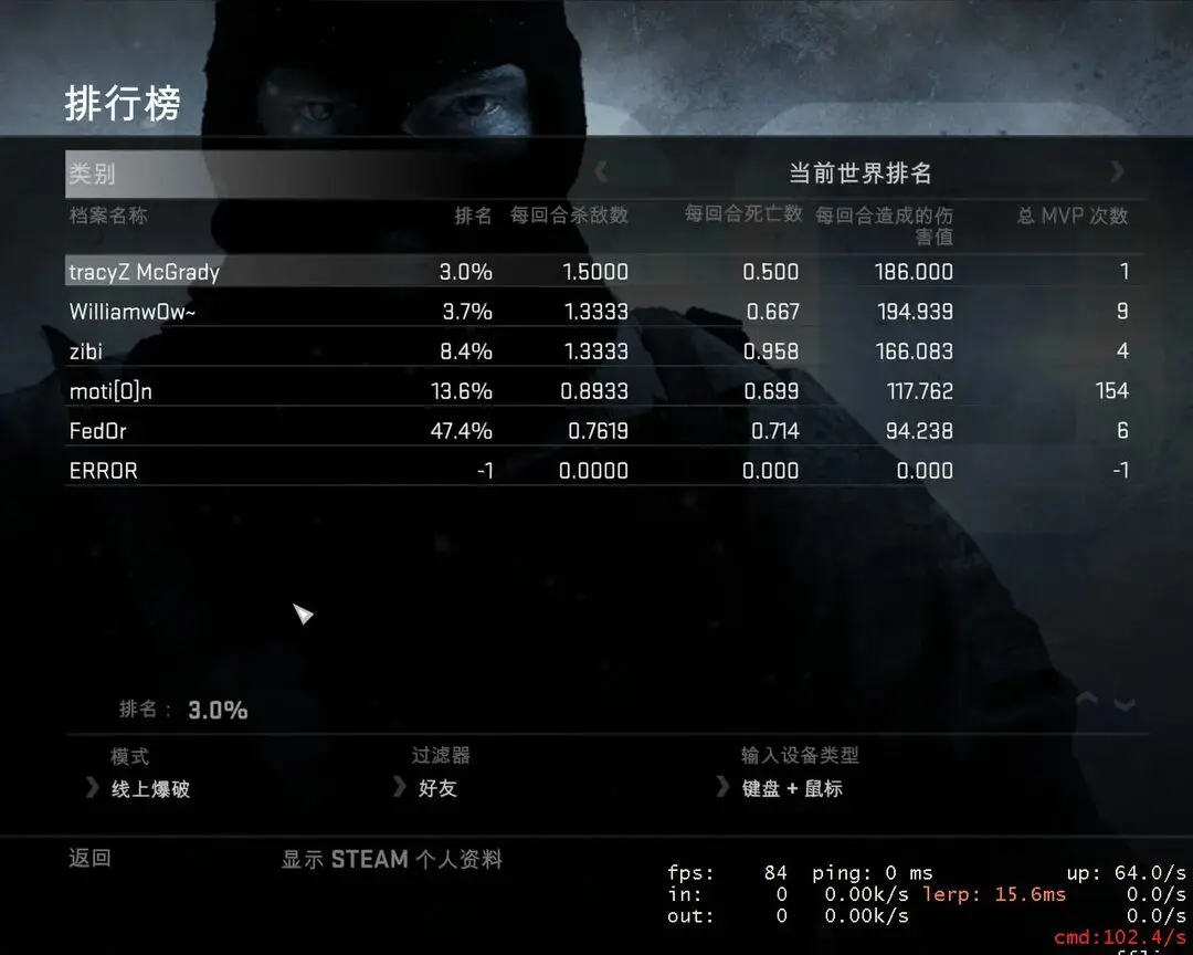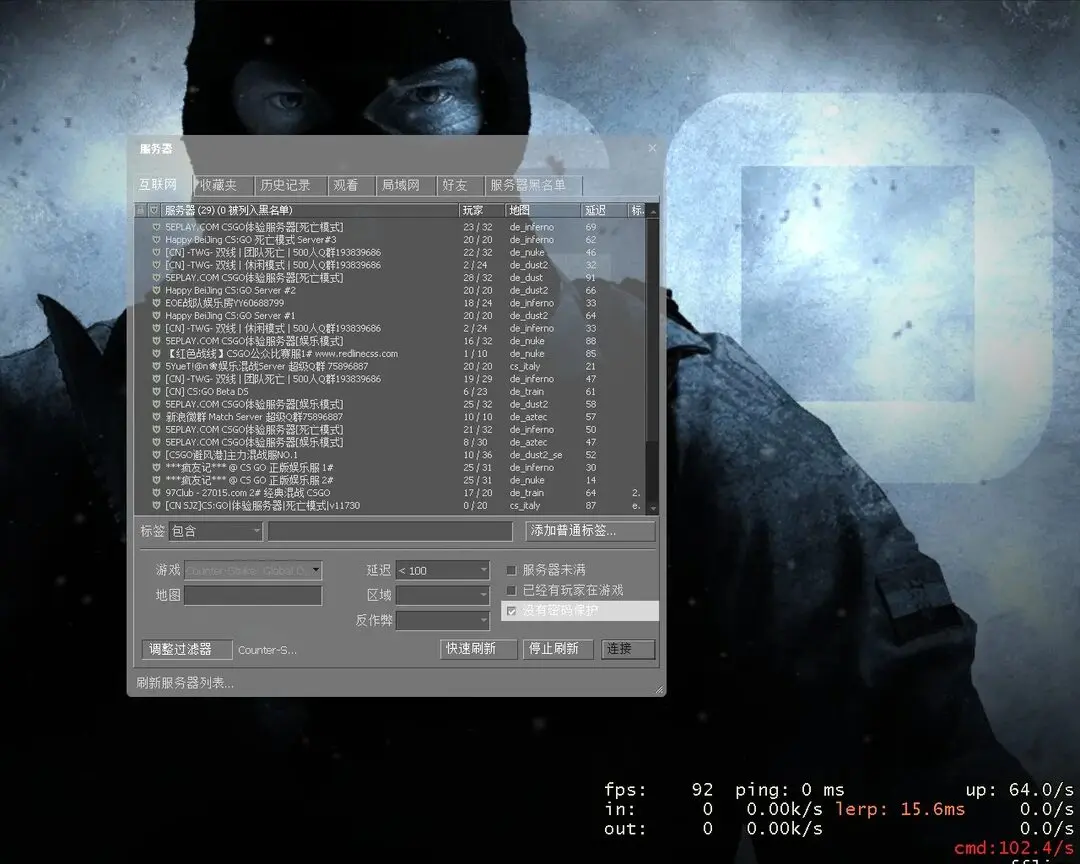 当然,如果把分辨率调为CS1.6常用的800×600或者640×480,FPS会升到80/120以上。