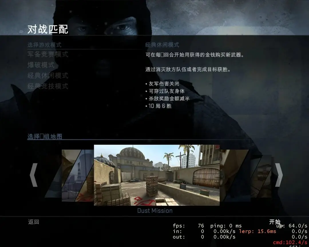 由于今天刚安装,也没来得及玩更多时间,基本的感觉是:比起CS1.6操作的流畅感受,CSGO带点网络游戏的味道,有滞阻、难控制。当然,也不是说它流畅度不行,而是相对于CS1.6而言的,比起某些渣网游,明显是好了不止百倍了。另外,CSGO的游戏画面确实做得非常出色了,各种效果全开的情况下,应该是一番很好的视觉享受。可是,这游戏的精华不是在于合作对抗和杀人的快感么???