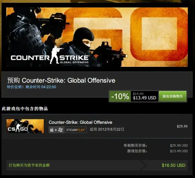 CS:GO推出试用版已经很久了,但是一直都没有找到机会去下载,平常遇到Steam强推的广告都是直接点关闭的,今天偶尔兴起就点了一下,发现原来CS:GO明天就要正式上市了。