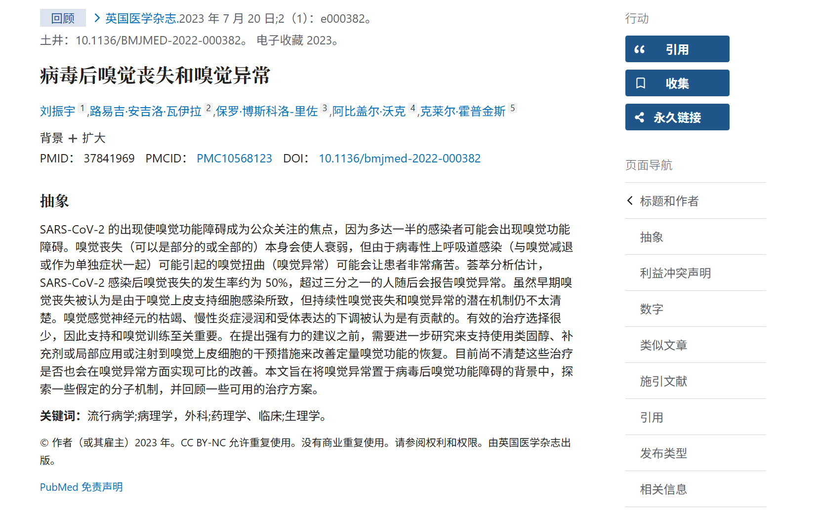 具体到复发机制,《英国医学杂志》上的 Post-viral olfactory loss and parosmia 文章指出,新冠患者嗅觉失灵的发生率高达 50%,其中许多人会发展为持久型或异嗅(闻到的味道变味儿),感染后6个月仍有27-60%的患者有嗅觉问题,1年后26.5-46%,甚至2年后还有8.3%。