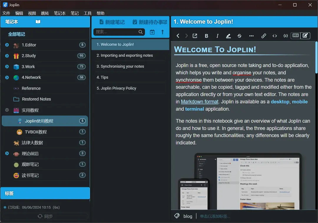 在 Joplin 中管理博客非常容易,所见所得毫无门槛可言。